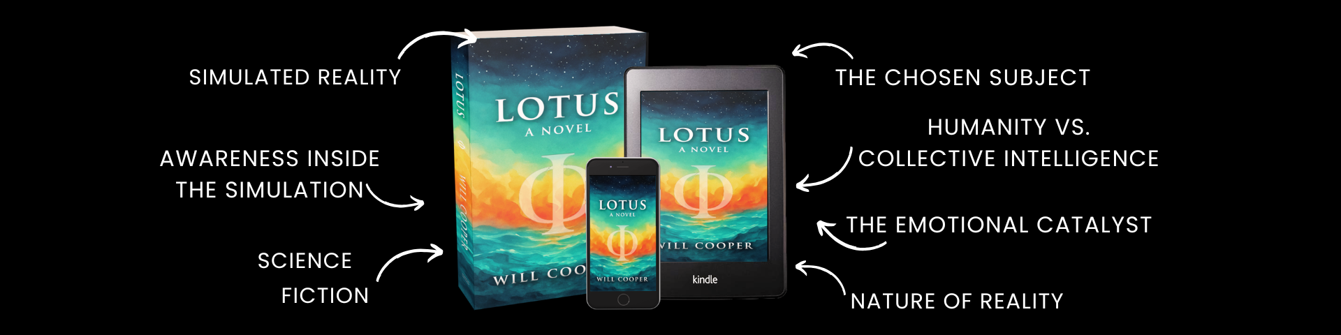 Born in England and raised in Canada, Will Cooper studied philosophy at Massey University and creative writing at Whitireia in New Zealand. Having worked as an English teacher, editor, lecturer, and electrician, he now dedicates himself fully to art and writing. Living on a farm animal sanctuary in rural Nova Scotia with his wife and three children, he cultivates creativity alongside compassion. His fiction blends epic adventure with philosophy, exploring love’s transformative power and the impact of technology on humanity’s search for meaning. His debut novel, LOTUS, marks the beginning of his literary journey.